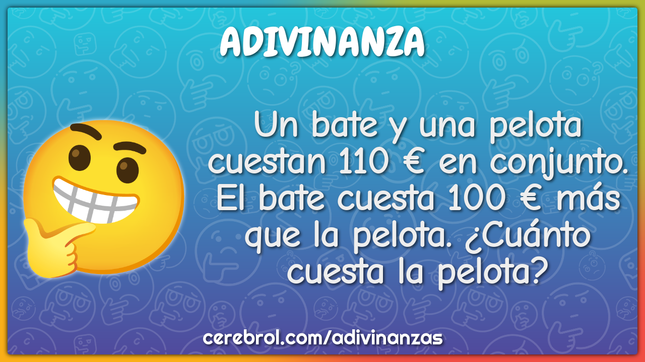 Un bate y una pelota cuestan 110 € en conjunto. El bate cuesta 100 € más que la pelota. ¿Cuánto cuesta la pelota?
